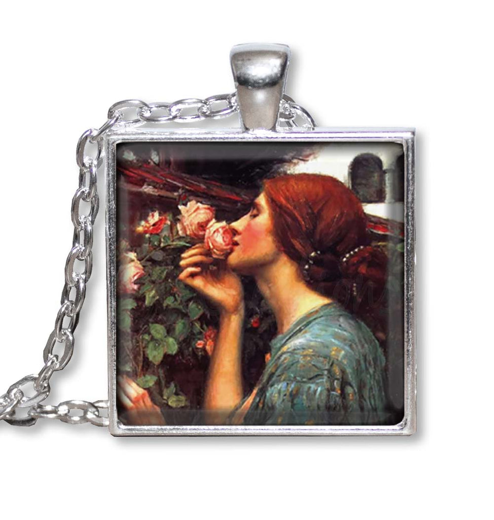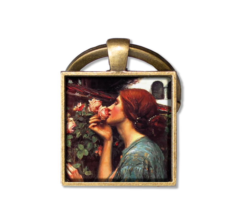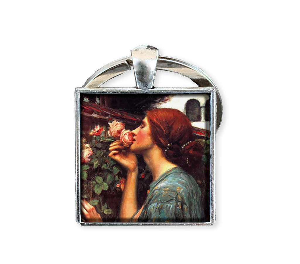 Square Glass Pendant Jewelry or Key Ring