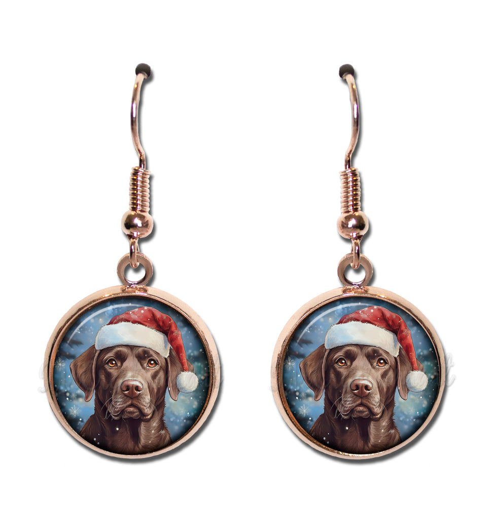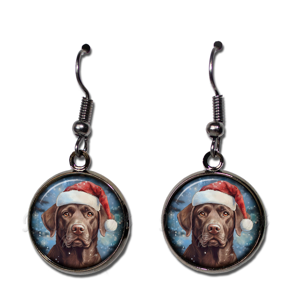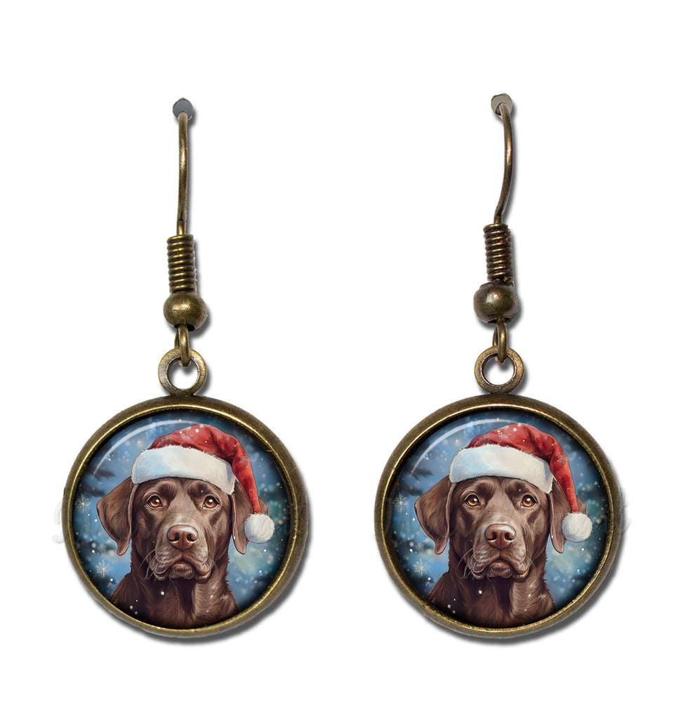 Chocolate Lab with Santa Hat