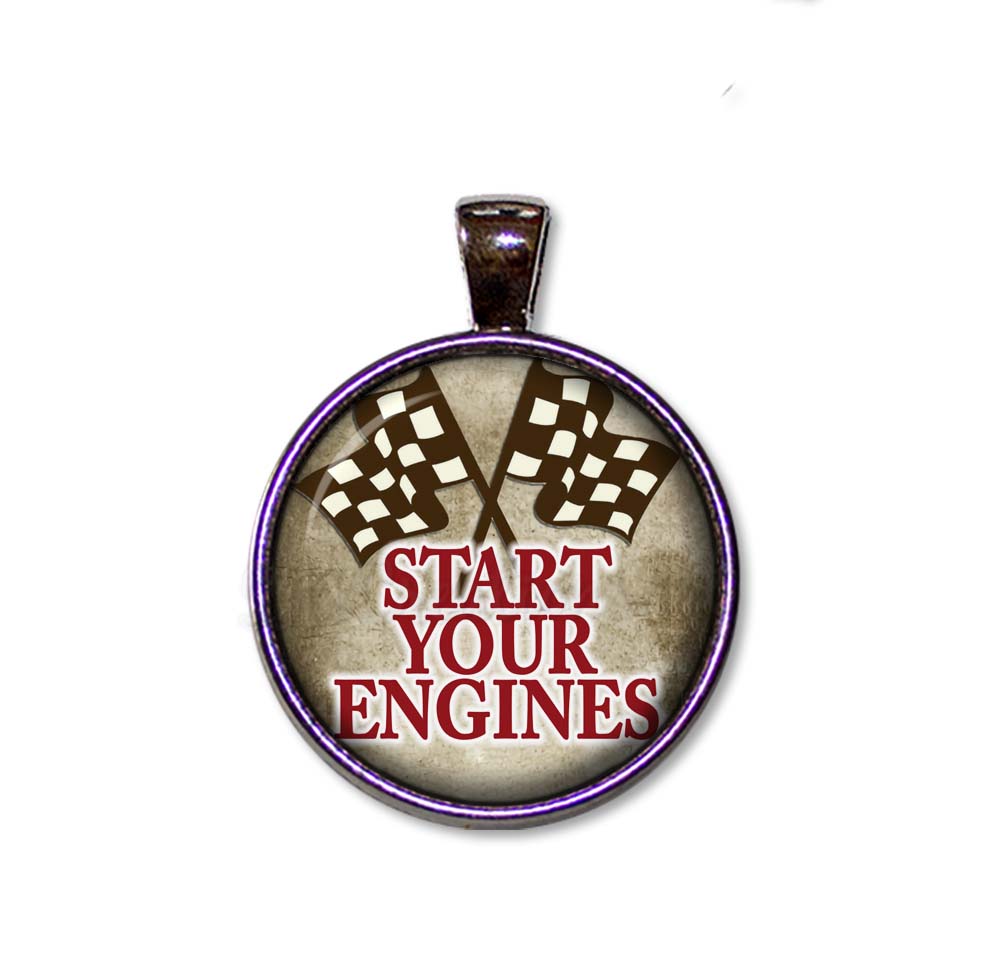 This stylish glass pendant necklace features a retro race car design with a checker flag, making it an ideal gift for dad or any race car enthusiast. Perfect for lovers of motorsport, these jewelry pieces and key rings are charming, affordable, and uniquely crafted, showcasing a vivid printed image under a dome glass that creates a captivating 3D effect. Each item is carefully made for durability and quality, and is beautifully packaged in an elegant organza gift bag, making it a thoughtful and memorable gift for any special occasion.