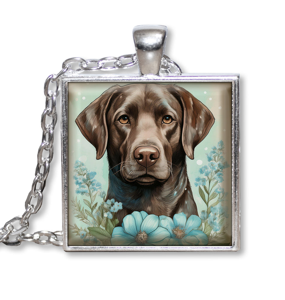 Square Glass Pendant Jewelry or Key Ring