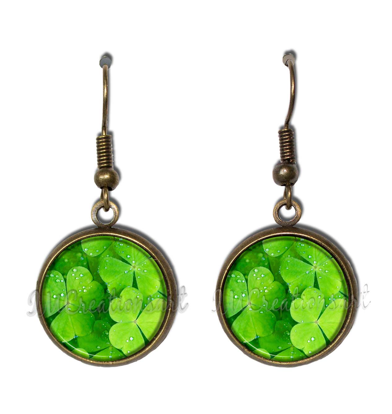 These delightful handmade French hook wire dangling earrings are perfect for any occasion, making them an exceptional gift choice for St. Patrick's Day, birthdays, anniversaries, Mother's Day, bridal favors, and holiday celebrations. Available in various metal finishes like Antique Bronze, Gunmetal Black, Rose Gold, and Silver Plated, they boast a lightweight resin design for comfort and style, making them an enchanting addition to any jewelry collection.