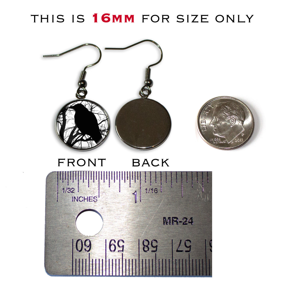 Sizes: Image in bezel tray: 16mm (0.63") round. From top to bottom is approximately 39mm (1.54")